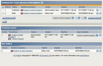 Having access to older versions of content enables supervisors or editors-in-chief to check for inconsistency or errors in the content. eZ Publish automatically keeps track of which content changes were made by which users at what time, and provides the option to revert content to a previous version.
