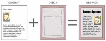 While content refers to structured data, design refers to the way the data is visually presented. Design includes the things that make up a web interface: HTML, stylesheets (CSS), images that are not part of the content, typography, fonts, and so on.