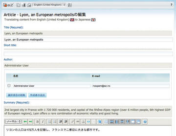 When you are editing content, you can choose to switch the language you are currently editing or to translate from one language to another. Content in the source language is shown when you are translating, to aid in the process. When creating or updating content translations, you can also use the built-in content “diff” functionality to see the added or removed text in the source language.